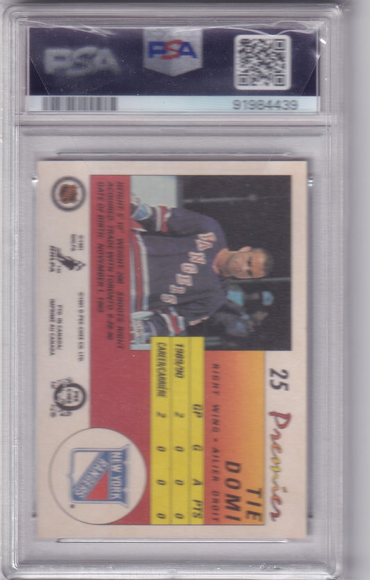 Tie Domi 1990-91 O-Pee-Chee Premier Rookie Card #25 New York Rangers PSA/DNA Autographed signed auto RC