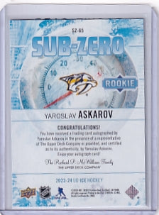 Yaroslav Askarov Sub-Zero Rookie Auto Card SZ-65 2023-24 Upper Deck Ice Rookie Card RC Nashville Predators