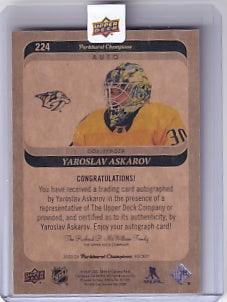 Yaroslav Askarov Base Rookie Auto Card #224 2023-24 Parkhurst Champions Rookie Card RC Nashville Predators