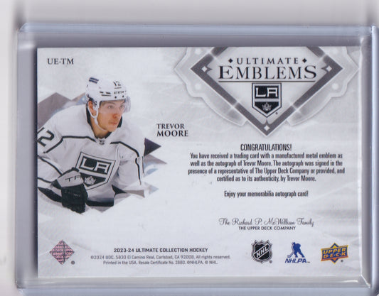 Trevor Moore Ultimate Emblems Auto Card UE-TM 2023-24 Upper Deck Ultimate Collection Los Angeles Kings
