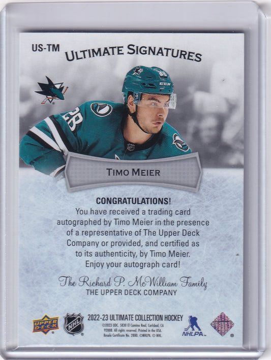 Timo Meier Ultimate Signatures Auto Card US-TM 2022-23 Upper Deck Ultimate Collection San Jose Sharks (2023-24 Update)
