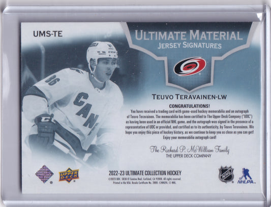 Teuvo Teravainen Ultimate Material Jersey Signatures Auto /99 Card UMS-TE 2022-23 Upper Deck Ultimate Collection Carolina Hurricanes (2023-24 Update)