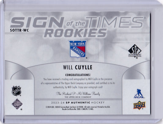 Will Cuylle Sign Of The Times Rookie Auto SOTTR-WC 2023-24 Upper Deck SP Authentic Rookie Card RC New York Rangers