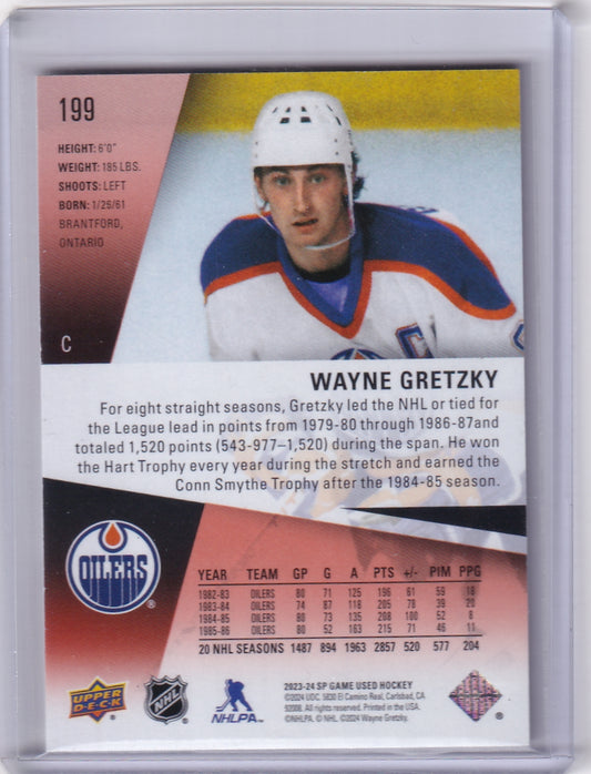 Wayne Gretzky Legends Red /263 #199 2023-24 Upper Deck SP Game Used Edmonton Oilers