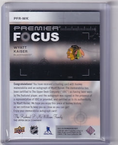 Wyatt Kaiser Premier Focus Rookie Patch Auto 063/175 Card PFR-WK 2023-24 Upper Deck Premier Rookie Card RC Chicago Blackhawks