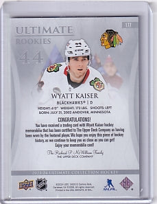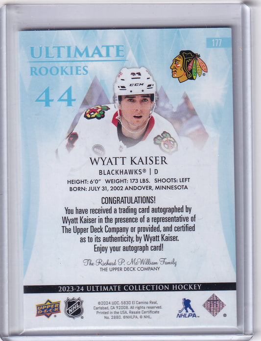 Wyatt Kaiser Ultimate Rookies Auto Card/299 #177 2023-24 Upper Deck Ultimate Collection Rookie Card RC Chicago Blackhawks