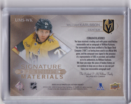 William Karlsson Signature Premium Materials Patch Auto /35 Card UMS-WK 2023-24 Upper Deck Ultimate Collection Vegas Golden Knights