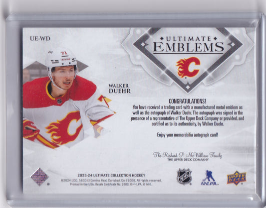 Walker Duehr Ultimate Emblems Rookie Auto Card UE-WD 2023-24 Upper Deck Ultimate Collection Rookie Card RC Calgary Flames