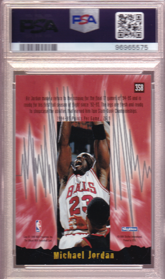 Michael Jordan 1995-96 NBA Hoops EARTH SHAKERS Card #358 PSA 8 Chicago Bulls