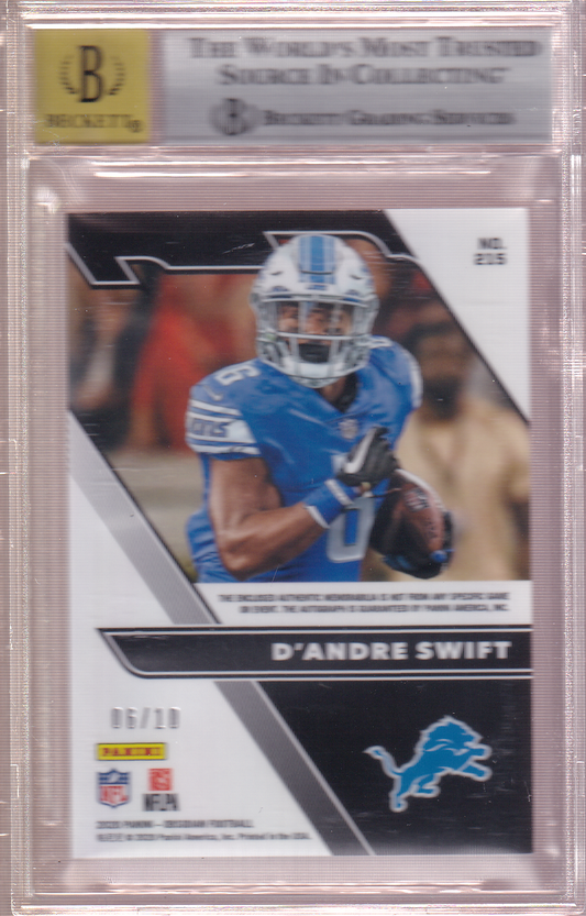 D'ANDRE SWIFT 2020 Panini Obsidian Rookie Jersey Autograph - Electric Etch Red 06/10 BGS 9 / Auto 10 Card RC #215 Detroit Lions