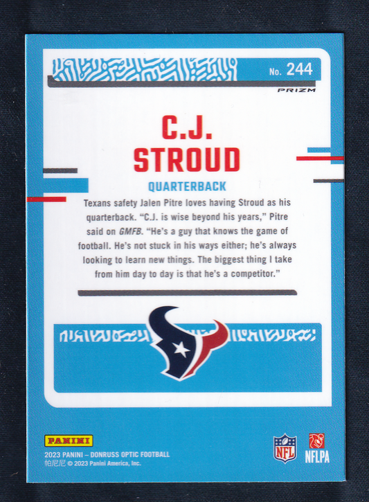 C.J. Stroud 2023 Donruss Optic Rated Rookie - STARS Card RC #244 Houston Texans CJ (Bottom left corner damage)