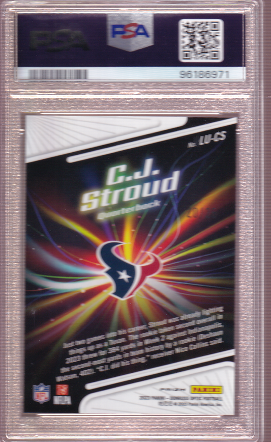 C.J. Stroud 2023 Donruss Optic Light It Up! - Black Pandora's Box 20/25 Rookie Card RC #LU-CS PSA 10 Houston Texans CJ