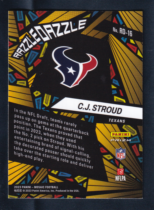 C.J. Stroud 2023 Panini Mosaic RAZZLE DAZZLE case Hit Rookie Card RC #RD-16 Houston Texans CJ