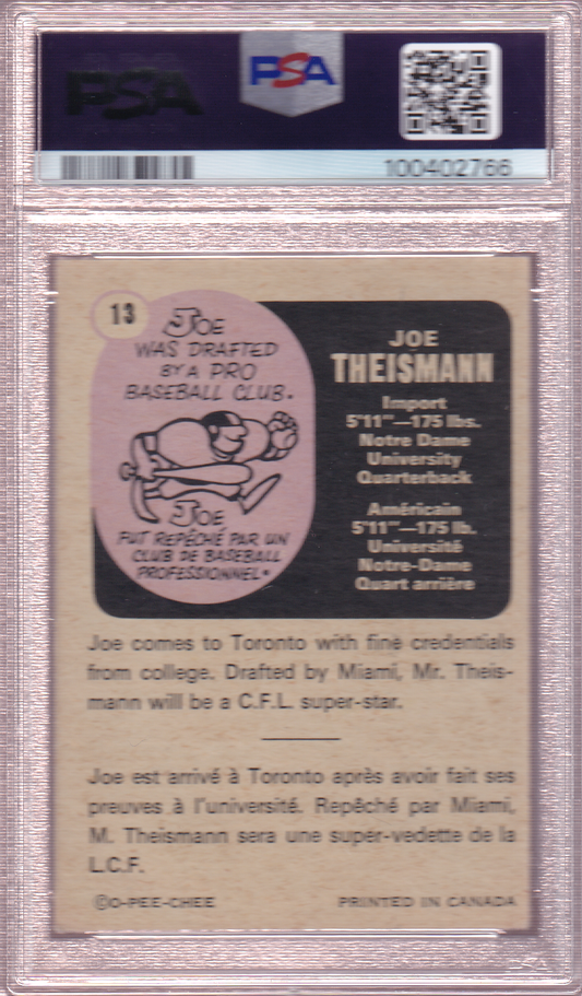 JOE THEISMANN 1971 O-Pee-Chee Toronto Argonauts CFL Card #13 PSA 5