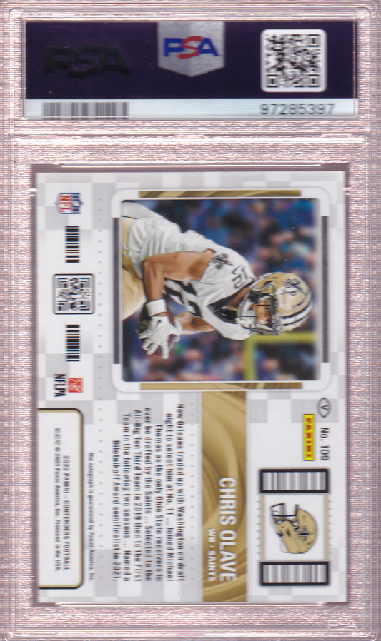 CHRIS OLAVE 2022 Panini Contenders Showcase Ticket Variation Auto Blue #109 PSA 9 New Orleans Saints