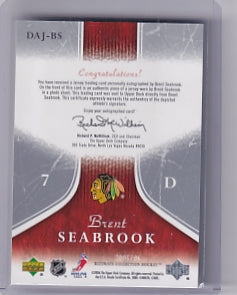 Brent Seabrook Ultimate Debut Threads Jersey Signature 03/25 Card DAJ-BS 2005-06 Upper Deck Ultimate Collection Rookie Card RC Chicago Blackhawks
