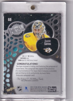 Juuse Saros Skybox Metal Universe Base Auto Card #68 2022-23 Skybox Metal Universe Nashville Predators