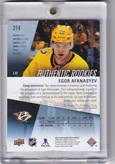 Egor Afanasyev Blue Authentic Rookies Auto Card #214 2023-24 Upper Deck SP Game Used Rookie Card RC Nashville Predators