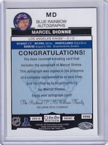Marcel Dionne Blue Rainbow Auto Card MD 2015-16 O-Pee-Chee Platinum Los Angeles Kings