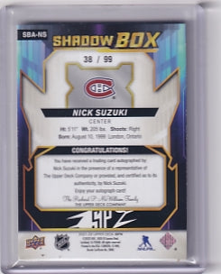 Nick Suzuki Shadow Box Auto 38/99 Card SBA-NS 2021-22 Upper Deck SPX Montreal Canadiens
