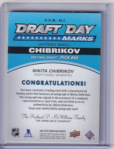 Nikita Chibrikov Draft Day Marks Auto "I" 31/35 Card DDM-NC 2024-25 SP Game Used Rookie Card RC Winnipeg Jets