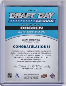 Liam Ohgren Draft Day Marks Auto "O" 05/35 Card DDM-LO 2024-25 SP Game Used Rookie Card RC Minnesota Wild
