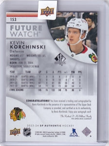 Kevin Korchinski Future Watch Auto 301/999 Card #153 2023-24 Upper Deck Sp Authentic Rookie Card RC Chicago Blackhawks
