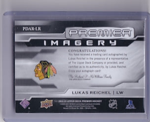 Lukas Reichel Premier Rookie Imagery 77/99 Card PDAR-LR 2022-23 Upper Deck Premier Rookie Card RC Chicago Blackhawks