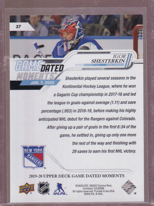 IGOR SHESTERKIN 2019-20 UD Game Dated Moments Rookie Card RC #37 New York Rangers
