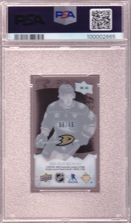 LEO CARLSSON 2023-24 UD Ice Rookie Premieres Mini Card Black /15 RC #MI-46 PSA 10 Anaheim Ducks