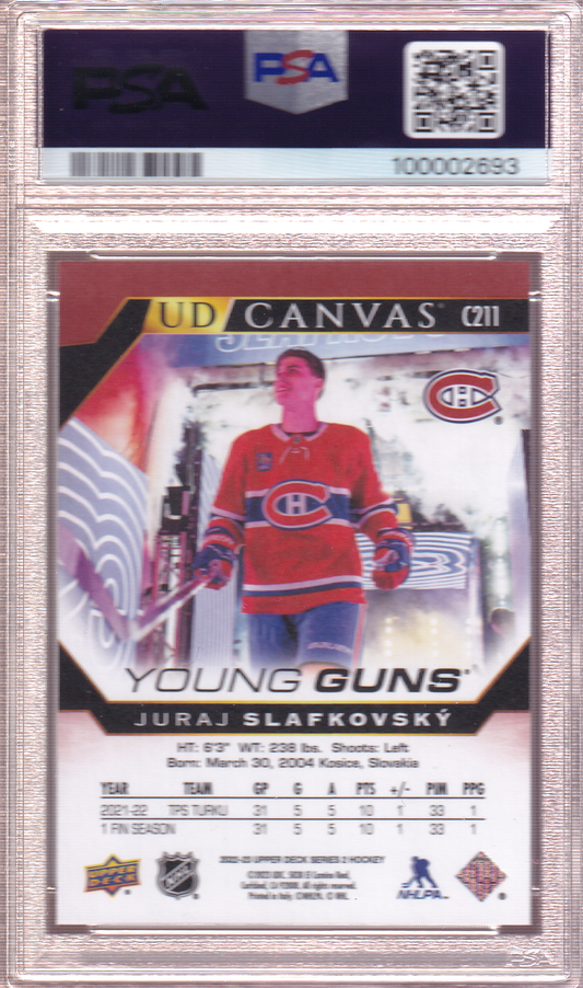 JURAJ SLAFKOVSKY 2022-23 Upper Deck UD Canvas Young Guns Rookie Card #C211 PSA 10 Montreal Canadiens RC
