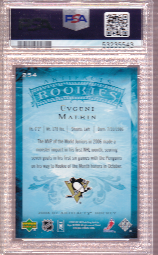 Evgeni Malkin 2006-07 UD Artifacts /599 Rookie Card RC #254 PSA 10 Pittsburgh Penguins