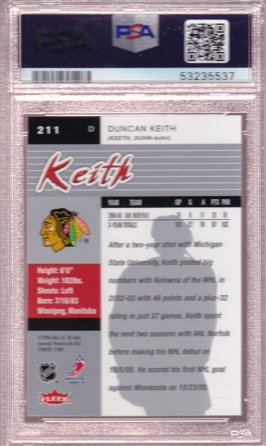 Duncan Keith 2005-06 Fleer Ultra PSA 10 Rookie Card RC #211 Chicago Blackhawks