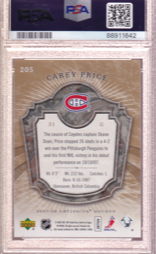 Carey Price UD ARTIFACTS Gold 40/50 Rookie Card RC #205 PSA 10 Montreal Canadiens