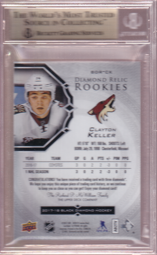 Clayton Keller 2017-18 Black Diamond Quad Diamond Relic Rookies 95/99 BGS 9.5 True Gem #BDR-CK Arizona Coyotes
