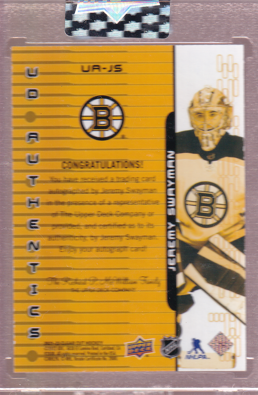 JEREMY SWAYMAN 2021-22 UD Clear Cut Ionix Auto Rookie Card # UA-JS encapsulated Boston Bruins