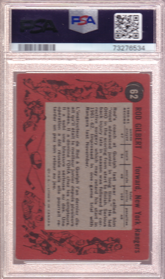 ROD GILBERT 1961-62 Topps Rookie Card #62 RC PSA 3.5 New York Rangers