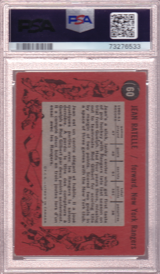 JEAN RATELLE 1961-62 Topps Rookie Card #60 RC PSA 4 New York Rangers