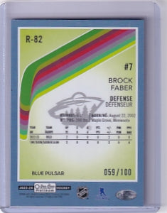 Brock Faber Blue Pulsar Retro Rookie 059/100 Card R-82 2023-24 O-Pee-Chee Platinum Rookie Card RC Minnesota Wild