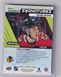 Frank Nazar Rookie Sygnatures Auto Card SR-FN 2024-25 Upper Deck Synergy Rookie Card RC Chicago Blackhawks