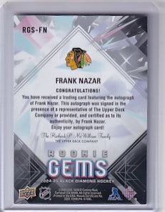 Frank Nazar Rookie Gems Auto 35/49 Card RGS-FN 2024-25 Upper Deck Black Diamond Rookie Card RC Chicago Blackhawks