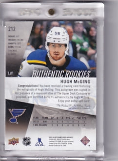 Hugh McGing Authentic Rookies Gold Patch 08/25 Card #212 2023-24 Sp Game Used Rookie Card RC St. Louis Blues