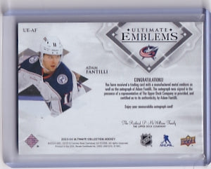Adam Fantilli Rookie Gold Ultimate Emblems Auto 24/25 Card UE-AF 2023-24 Upper Deck Ultimate Collection Rookie Card RC Columbus Blue Jackets