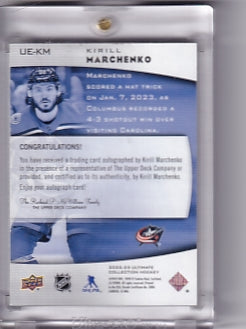 Kirill Marchenko Ultimate Emblems Rookie Auto Card UE-KM 2022-23 Upper Deck Ultimate Collection Rookie Card Columbus Blue Jackets