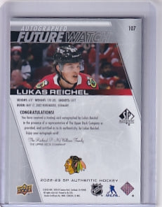 Lukas Reichel Future Watch Auto 476/999 Card #107 2022-23 Upper Deck Sp Authentic Rookie Card RC Chicago Blackhawks