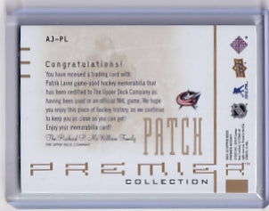 Patrik Laine Premier Collection Patch 5/5 Card AJ-PL 2021-22 Upper Deck Premier Columbus Blue Jackets