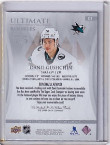 Danil Gushchin Ultimate Rookie Jersey /599 Card #179 2023-24 Upper Deck Ultimate Collection Rookie Card RC San Jose Sharks