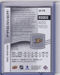 Pavel Mintyukov Rookie Patch Auto 167/249 Card AR-PM 2023-24 Upper Deck Premier Rookie Card RC Anaheim Ducks