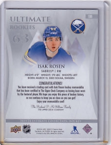 Isak Rosen Ultimate Rookie Jersey /599 Card #186 2023-24 Upper Deck Ultimate Collection Rookie Card RC Buffalo Sabres