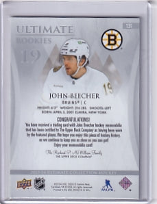 John Beecher Ultimate Rookie Jersey /599 Card #131 2023-24 Upper Deck Ultimate Collection Rookie Card RC Boston Bruins